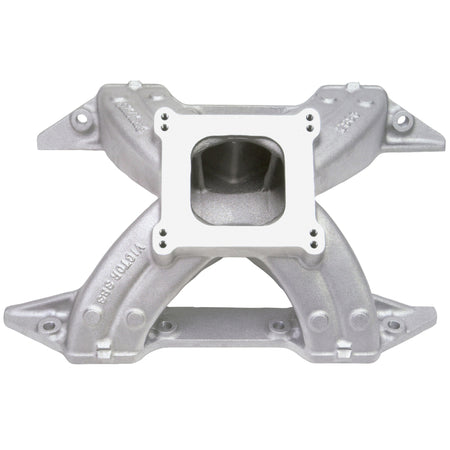 Edelbrock part #2886 Victor 383 intake manifold is available for competition Chrysler B Series Wedge 361-383-400 c.i.d. engines. The computer-generated runners easily handle the high airflow requirements demanded by large displacement low-deck engines. This extra tall single plane manifold combines a long runner, "line of sight" layout, and extended divider walls to maximize torque, power and fuel distribution throughout the mid and upper rpm range. We've added extra material to the square bore carburetor pad and included the inside bolt pattern so it can be easily opened up for Thermo-Quad applications. Match with Edelbrock Performer RPM or Victor aluminum cylinder heads for even higher performance potential. Edelbrock part #7799 valley cover is required when used with Edelbrock Victor series cylinder heads.