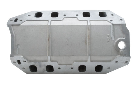 Edelbrock part #28001 Big Victor 2 Spread-Port intake manifold is designed for large cubic-inch or high rpm drag racing big-blocks with Edelbrock Big Victor, Dart Big Chief or Brodix Big Duke cylinder heads, this manifold has an average runner area of approximately 4.75 sq. in. The port exits have been reduced to accommodate the wide variety of intake port sizes and require port matching. The runners have a minimum corner radius of .500" from the plenum to the exit allowing the popular oval port shape to be used. The outside runners are shorter and straighter than competitor's manifolds and the plenum is longer front to back. These features, combined with approximately 5% taper in runner cross-sectional area, give better top end horsepower while maintaining consistency and throttle response off the stop. All applications are equipped with a 4500 Series flange and will accept 2.25" throttle body butterflies without a spacer or modification.