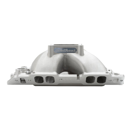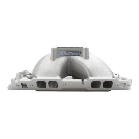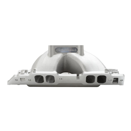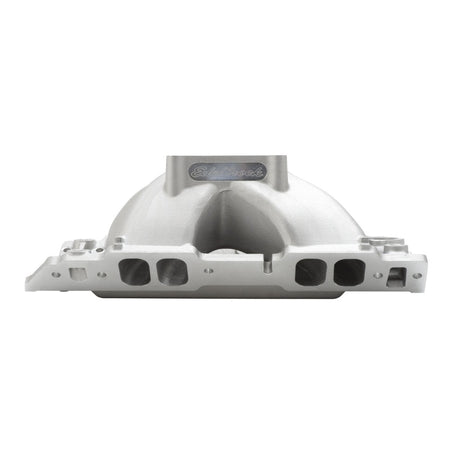 Edelbrock part #2895 Super Victor II intake manifold is designed for use with large cubic inch big-block Chevy engines using the latest design conventional port heads. This single-plane intake manifold is ideal for any 1,000+ horsepower drag race engine with high air flow requirements. This manifold features thicker flanges resulting with .080" increase in port exit height. Accepts standard height distributors. The Edelbrock Super Victor II #2895 intake manifold has an extra large carburetor outer flange with a 5" x 5" opening to fit high flow carburetors and throttle stops.