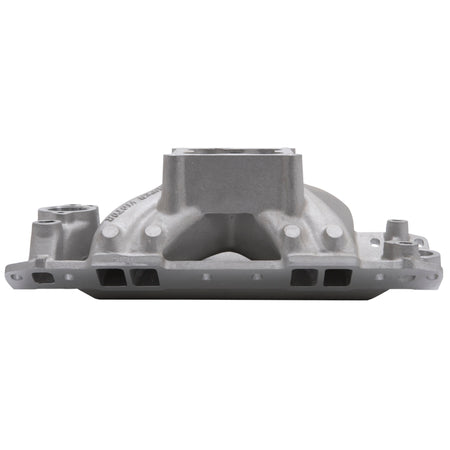 Edelbrock part #2970 Super Victor 4500 23 degree standard port location intake manifold is designed for small-block Chevys with 4500 Series carburetors and 23 degree heads. This intake manifold has a large runner cross-sectional area (3.2 square inches) and a highly efficient cloverleaf plenum design. In dyno tests on a 358-inch small-block, #2970 made 10 horsepower more than the best competitor's manifold!