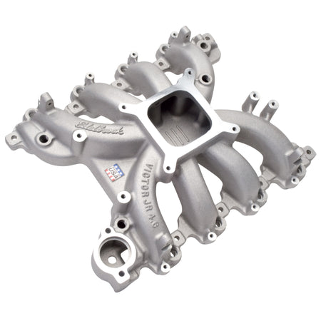 Edelbrock part #28385 Victor Jr. Ford 4.6L SOHC EFI intake manifold is designed for Ford 4.6L SOHC Modular engines, 1999-2004 SOHC Modular 4.6L engine is designed for 4.6l Ford's using EFI in racing. Timing control module available separately. Not intended for or as a stock replacement intake manifold. Whether you're building a daily driver, ultra high-performance's street machine or race car, an Edelbrock intake manifold will provide the power right where you want it. The Edelbrock Victor Jr. Ford 4.6L SOHC also features a natural aluminum finish for a classic look. For the ultimate "Made in USA" quality, every Edelbrock intake manifold is cast and machined in the USA.