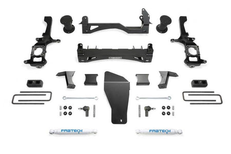 The Basic System includes front coilover spacers that utilize the factory Coilover shocks. Includes rear Performance shocks. The Nissan XD systems feature Fabtech?s proven IFS technology with extended length ductile iron steering knuckles for proper factory electronic stability control functionality. Heavy duty 1/4" thick steel lower control arm crossmembers provide superior ground clearance while the integrated front differential skid plate adds protection to the drivetrain. Rear lift is accomplished with a block and u-bolt configuration.