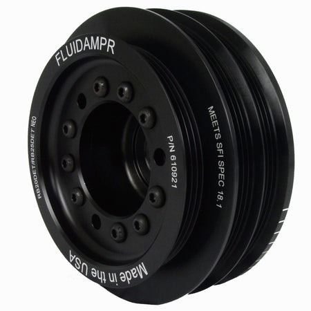 Protect your engine. Modifications can compromise your stock harmonic balancer. Install a Fluidampr performance damper early for best durability. Superior viscous damper design controls harmful torsional vibration across the entire rpm range. Reduce wear on engine components. Reduce risk of crankshaft failure. Improve timing. Unleash lost torque and horsepower. Precision CNC machined and balanced high-grade steel components. Corrosion resistant black zinc finish with engraved timing marks. No maintenance required. Trusted by leading engine builders worldwide. SFI 18.1 certified. Made in USA.