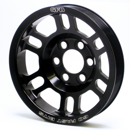 GO FASTER ? ADD LIGHTNESS, GFB's Lightweight Pulley Kits offer sharper throttle response and faster acceleration by significantly reducing the rotating mass at the engine. Made from a single billet of 6061-T6 aluminium, then precision CNC machined to exacting tolerances, our pulley kits offer an exceptional bolt-on performance advantage without the need for supporting mods or tuning