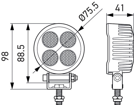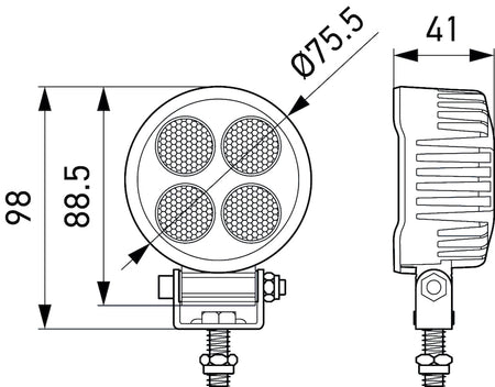 The new HELLA VALUEFIT worklight series offers powerful light output in a compact and attractive design. The housing and the bracket are kept in black, giving the worklight its modern and elegant design. The TS1700 / TR1700 achieves 1700 lumens despite its compact size. Thus, the headlamps of this series are not only suitable as halogen headlamp replacements, but also as a perfect solution for applications that require more light. The new HELLA VALUEFIT worklight series is also equipped with a thermal sensor that adapts to the ambient temperature. This new feature not only prevents overheating or LED failure, but also increases light output when the ambient temperature is low, providing the optimum amount of light under all conditions. This means that even the very compact TS1700 / TR1700 can achieve an impressive light output of up to 2000 lumens in cold environments, making it the most powerful VALUEFIT worklight in this size. This is particularly advantageous at night, when it is dark and therefore colder, as the lighting is adapted to the ambient temperature. In cold areas, for example, the stronger light can penetrate the pane better and melt the ice more quickly due to the heat emitted. In environments where it tends to be warmer and usually brighter, the worklight automatically dims down, extending the life of the LEDs. LED worklights are also completely maintenance-free and offer a significantly longer service life than the bulb of a halogen headlight. The TS1700 / TR1700 is also approved as a reversing light according to ECE-R23.