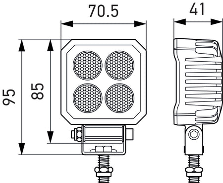 The new HELLA VALUEFIT worklight series offers powerful light output in a compact and attractive design. The housing and the bracket are kept in black, giving the worklight its modern and elegant design. The TS1700 / TR1700 achieves 1700 lumens despite its compact size. Thus, the headlamps of this series are not only suitable as halogen headlamp replacements, but also as a perfect solution for applications that require more light. The new HELLA VALUEFIT worklight series is also equipped with a thermal sensor that adapts to the ambient temperature. This new feature not only prevents overheating or LED failure, but also increases light output when the ambient temperature is low, providing the optimum amount of light under all conditions. This means that even the very compact TS1700 / TR1700 can achieve an impressive light output of up to 2000 lumens in cold environments, making it the most powerful VALUEFIT worklight in this size. This is particularly advantageous at night, when it is dark and therefore colder, as the lighting is adapted to the ambient temperature. In cold areas, for example, the stronger light can penetrate the pane better and melt the ice more quickly due to the heat emitted. In environments where it tends to be warmer and usually brighter, the worklight automatically dims down, extending the life of the LEDs. LED worklights are also completely maintenance-free and offer a significantly longer service life than the bulb of a halogen headlight. The TS1700 / TR1700 is also approved as a reversing light according to ECE-R23.