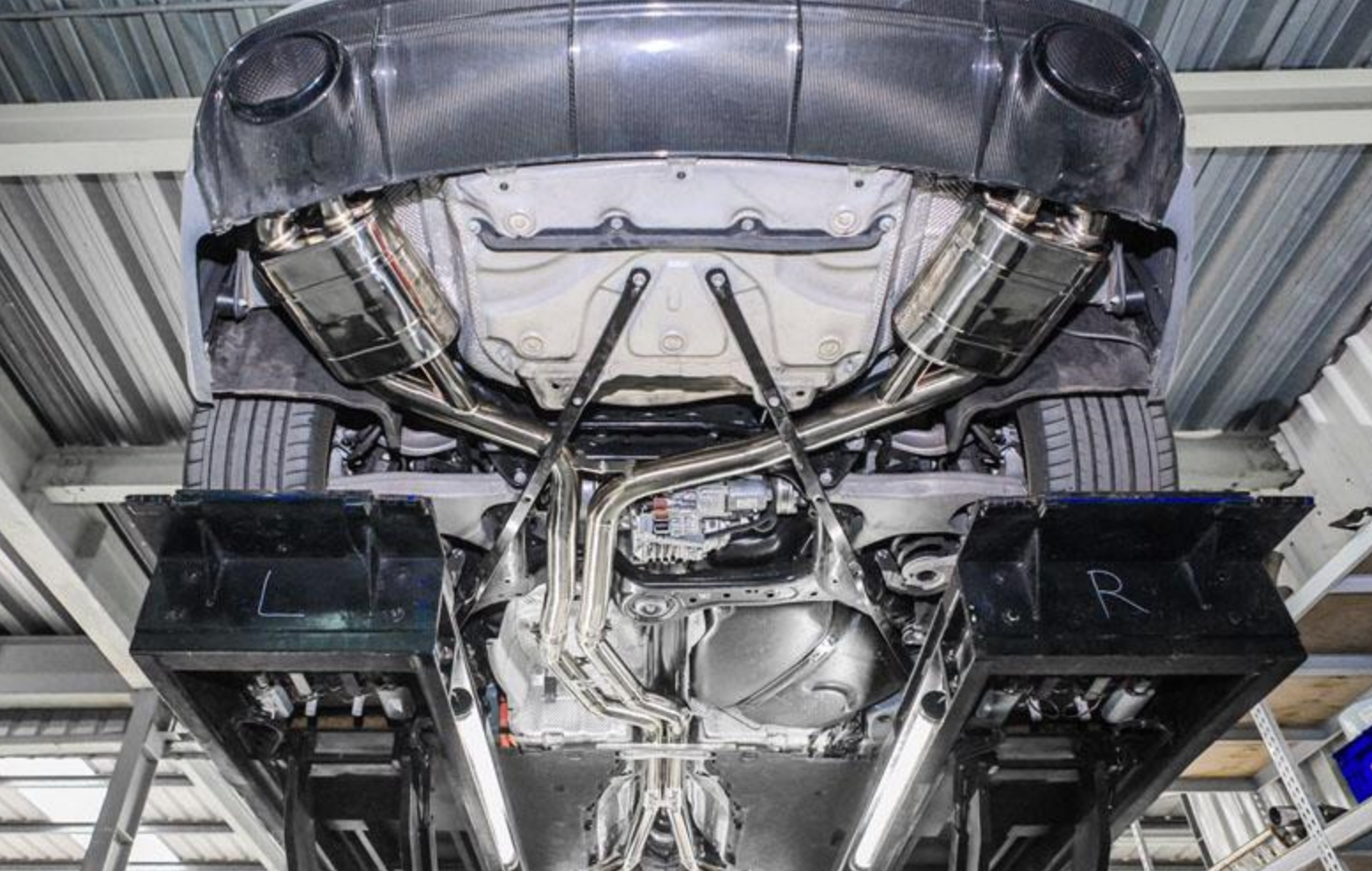 Minimum weight and maximum sound are the name of the game. Our exhaust system consists of our trademark Valvetronic muffler with tips. We use the original actuators to control the valves. Our unique design overcomes the limits set by the stock exhaust, so that performance, sound, and driving pleasure can be increased dramatically.