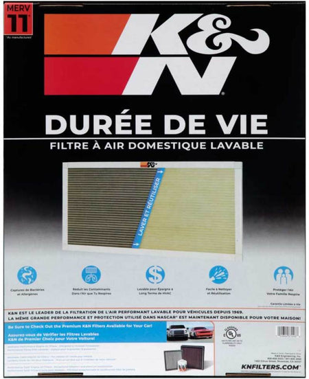 Upgrade your HVAC system with a K&N Washable and Reusable Air Filter. Designed with your well-being in mind, the MERV 11 rated high-quality pleated synthetic filter media, helps ensure superior filtration and airflow. These filters strike a perfect balance of airflow and protection and are a great choice for most home environments. The superior dust holding capacity guarantees long-lasting performance, providing you with clean and fresh air for years to come. Like all K&N HVAC air filters, these durable filters are washable and reusable and guaranteed for the life of your HVAC unit. Say goodbye to the hassle of constantly purchasing new disposable filters. Say goodbye to the hassle of constantly purchasing new disposable filters -- simply wash and reinstall your K&N filter and enjoy years of use without compromising performance. By electing to use K&N’s reusable filter over a disposable, you are not only save money but are contributing to a happier, healthier planet.