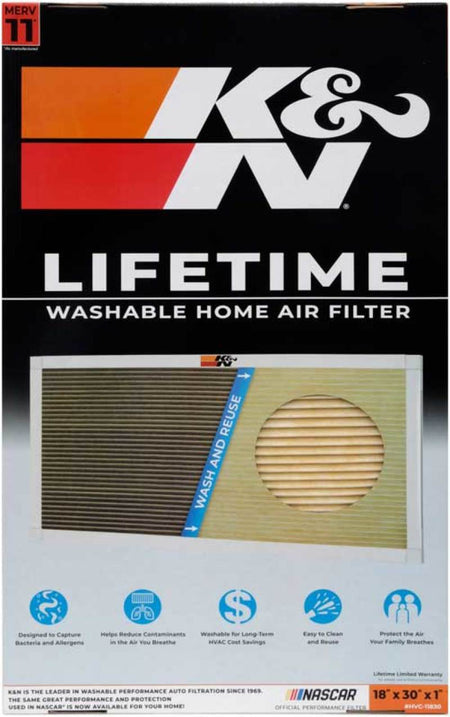 Upgrade your HVAC system with a K&N Washable and Reusable Air Filter. Designed with your well-being in mind, the MERV 11 rated high-quality pleated synthetic filter media, helps ensure superior filtration and airflow. These filters strike a perfect balance of airflow and protection and are a great choice for most home environments. The superior dust holding capacity guarantees long-lasting performance, providing you with clean and fresh air for years to come. Like all K&N HVAC air filters, these durable filters are washable and reusable and guaranteed for the life of your HVAC unit. Say goodbye to the hassle of constantly purchasing new disposable filters. Say goodbye to the hassle of constantly purchasing new disposable filters -- simply wash and reinstall your K&N filter and enjoy years of use without compromising performance. By electing to use K&N’s reusable filter over a disposable, you are not only save money but are contributing to a happier, healthier planet.