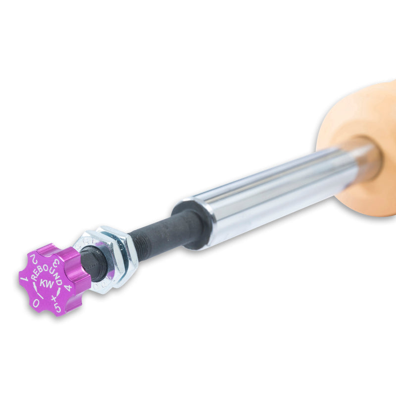 KW V2 INOX-LINE coilovers are the perfect solution for drivers who want more than just outstanding looks and adjustable ride height. In addition to stainless steel coilover struts, and corrosion-resistant components built for long term durability, KW V2 coilovers utilize TVR-A (Twin Valve Rebound - Adjustable) technology that allow Adjustment of the rebound damping characteristics with 16 clicks so you can fine tune the ride comfort or performance to your satisfaction. As with all KW coilovers our engineers develop vehicle specific damper settings that undergo comprehensive testing on the Nurburgring Nordschleife and in our KW 7-post Driving Dynamic Test Center. With a KW coilover kit the driving experience is more dynamic and direct. With the rebound adjustability you have a more direct influence on the handling or comfort of the car. With 16 precise clicks you can adjust the KW dampers (more firm or more comfortable) without affecting the compression damping fine-tuned by our engineers. The two-stage, patented TVR-A (Twin Valve Rebound - Adjustable) technology enables a small volume of oil flow through an adjustable, conically shaped, low-speed bypass during low damper speeds, while at high damper speeds, the main rebound stage valve opens allowing a larger volume of oil to flow. This provides a big improvement in terms of ride comfort without influencing the high-speed range. There are 16 precise clicks available for individual settings, so you can choose between more comfort or more body control. With KW V2 coilovers you can achieve maximum lowering within an approved lowering range that ensures a proper functioning suspension and adequate travel after your car is lowered. Even after years of use you can easily adjust the ride height thanks to the dirt resistant trapezoid thread and composite adjustment collar.