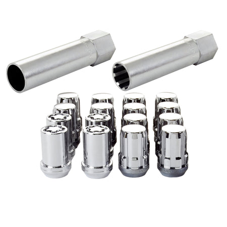 The convenient way to order Tuner wheel locks and lug nuts; contains all the wheel locks and lug nuts that you need to install 4 wheels and tires.; Why settle for ordinary lug nuts? SplineDrive Lug Nuts combine style and performance.; A no-compromise design engineered to fit small diameter recesses in Tuner style wheels.; SplineDrive lug nuts offer closed-end design, maximum gripping power, more stud engagement and a greater seating surface than socket style lug nuts.; In addition they are 30% lighter in weight.; Like all McGard lug nuts, the chrome plating is guaranteed for life not to rust, chip or peel.; The easy-to-use, one-piece wheel locks function like regular lug nuts, but require a special key tool for installation and removal.; The computer generated key designs allow for an infinite number of key patterns.; McGard manufactures wheel locks and lug nuts in the USA to meet or exceed O.E.M.; standards for safety and durability.; Every lug nut and wheel lock is fully machined from restricted chemistry steel made specifically for McGard and through-hardened for its unsurpassed level of safety.; For use on aluminum cone seat wheels only.; Clamshell Packaging.; This product may contain globally sourced materials/components.