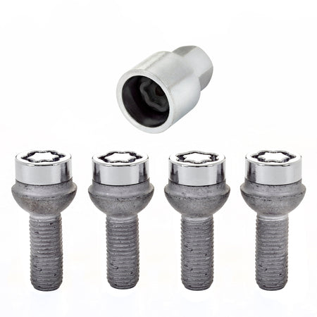 Protecting the world's finest wheels and tires from theft since 1964.; Wheel Lock bolts are designed in USA and manufactured in EU and USA.; Presently, McGard is an Original Equipment wheel lock supplier to most automobile brands around the world.; These easy-to-use wheel locks function like regular lug bolts, but require a special key tool for installation and removal.; The steel collar on the user friendly key guides the key into the lock pattern.; The collar holds the key in alignment for easy installation and removal.; The computer generated key designs allow for an infinite number of key patterns.; The extra narrow pattern groove on the lock resists the intrusion of removal tools into the pattern.; Every McGard wheel lock utilizes fully machined, restricted chemistry steel made specifically for McGard and through-hardened for its unsurpassed level of security.; McGard's plating process includes several layers of nickel and one layer of microporous chrome producing a superior finish while protecting against rust.; The bolt stem has a dacromet coating to meet O.E.M.; standards.; For use with steel or aluminum wheels with a ball-shaped seat. This product contains globally sourced materials/components.