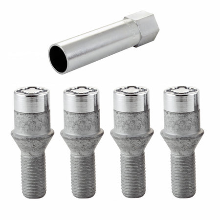McGard Wheel Lock Bolt Set - 4pk. (Tuner / Cone Seat) M12X1.5 / 17mm Hex / 22.4mm Shank L. - Chrome