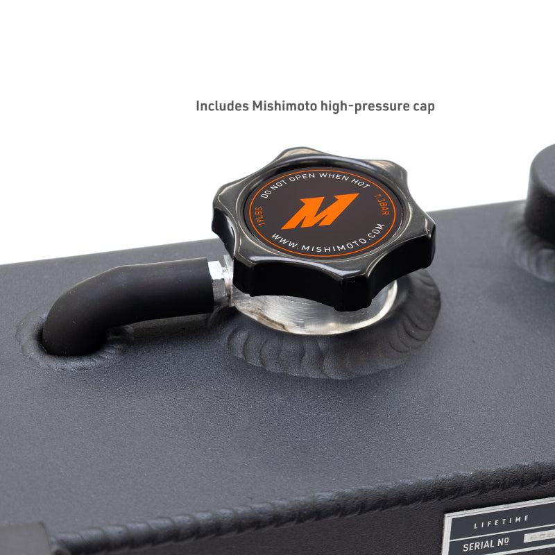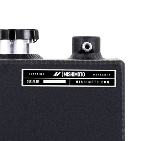Upgrade your Jeep Wrangler JL or Gladiator JT with an aluminum expansion tank built to withstand the toughest trails and daily driving. The stock plastic tanks in Wranglers are known for cracking and leaking at the seams. It is not a matter of if it will fail, but when. Replacing it with this TIG-welded aluminum tank ensures you are ready for your next adventure without worrying about coolant loss.--This coolant recovery tank increases fluid capacity over the factory design and features internal OEM-style baffling to prevent aeration and sloshing when your Jeep is off-camber or bouncing through rough terrain. The wrinkle black powder-coated finish not only adds corrosion resistance but also gives your engine bay a rugged, refined look. An easy-to-read sight glass replaces the factory dipstick, making fluid checks quick and straightforward.--Installation is simple and can be done before your next weekend trip, giving you peace of mind on and off the trail. Complete with a Mishimoto radiator cap and backed by our lifetime warranty, this aluminum expansion tank is the reliable upgrade every Wrangler and Gladiator owner needs.