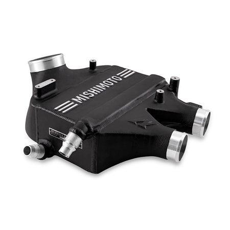 BMW has a knack for maintaining their stake as the benchmark when it comes to performance luxury vehicles, with the F8X generation being no exception. The S55 that powers the 2015-2020 BMW F8X M3, M4 and M2 Competition is dripping with technology, which includes an air-to-water intercooling system for a means of keeping cool. Where BMW's intercooler design was enough to help bring this generation of mid-sized M's to their peak, we here at Mishimoto found some weaknesses that we felt obliged to improve on. We started with the end tanks. The Mishimoto Performance Air-to-Water Intercooler features full, cast aluminum end tanks, TIG welded to our bar-and-plate core for maximum durability as you increase the boost in your Bimmer. Our end tanks also include internal air diverters on both the inlet and outlet to ensure an even flow of charged air through the core. When it comes to the core, bigger is better, and we were able to expand the size of our core in all dimensions, resulting in a 29-percent increase in core volume while abstaining from any modifications when it comes to installation. Our new core also features a unique single-pass internal fin layout for the coolant passage for optimal heat transfer from the charged air to the coolant. With our improvements combined, we saw the Mishimoto 2015-2020 BMW F8X M3 and M4 Performance Intercooler increase flow through the core by 16-percent and recorded a 12 F drop in intake air temperatures when tested with the Mishimoto Performance Heat Exchanger. We also recorded an average increase of 11whp and 8wtq during our testing with peak gains of up to 31whp and 10wtq. With the micro-wrinkle black finish and sleek header plate design, the Mishimoto Performance Air-to-Water Performance intercooler makes for not only the perfect addition to your F8X build, but also looks right at home in the M's engine bay. Like all of our products, the Mishimoto 2015-2020 BMW F8X M3, M4, and M2 Competition Performance Air-to-Wate