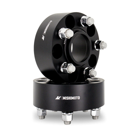 Wheel spacers are a great way to create brake clearance, add track width, prevent tire rub, and provide ideal wheel fitment on your vehicle. Mishimoto now offers a complete catalog of wheel spacers for a variety of common thread patterns, center bores, and thicknesses. Quality material selection, precise engineering, and meticulous manufacturing are critical elements to creating our incredibly robust products, and our wheel spacers are no different. Each spacer is forged from 6061-T6 aluminum. This material offers a perfect blend of strength and lightness, both are extremely vital in this application. Our spacers feature grade-12.9 steel studs and lug nuts, ensuring a safe and secure installation. Mishimoto's hub-centric design provides a direct extension of the axle hub for precise wheel fitment, reduced load on the hardware, and ensures safe and smooth driving.----Mishimoto wheel spacers feature a black anodized finish to ensure protection against corrosion. Each kit contains two wheel spacers with pre-installed studs and all hardware necessary for installation. As with all our products, this wheel spacer kit includes our signature Lifetime Warranty.
