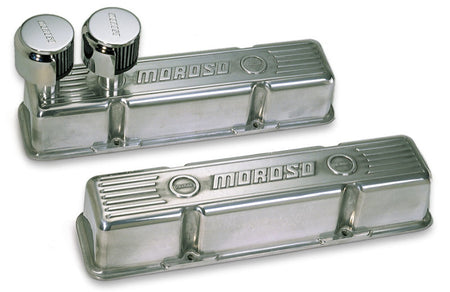 Moroso Chevrolet Small Block Valve Cover - 1 Cover w/2 Breathers at Front - Polished Aluminum - Pair