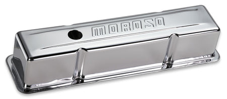 Moroso Chevrolet Small Block Valve Cover - w/Baffle - Stamped Steel Chrome Plated - Pair