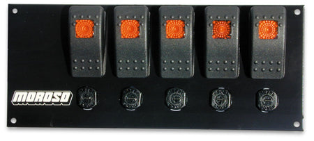 Moroso Rocker Switch Panel - Flat Surface Mount - LED - 3-3/8in x 8in - Five On/Off Switches