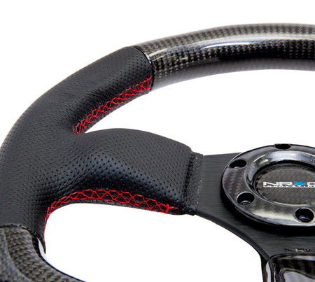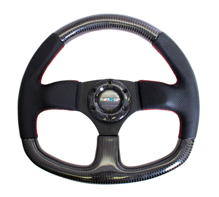 NRG Carbon Fiber Steering Wheel (320mm) Flat Bottom & Leather Trim w/Red Stitching