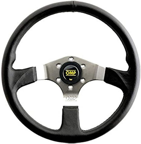 OMP Asso Flat Steering Wheel w/ 3 Steel Spokes (350mm) - Large Leather (Black)
