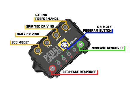 Why do you need Pedal Commander?Pedal Commander is a throttle response controller. It removes response delays on your electronic accelerator pedal. Effectively, it allows your engine to respond faster. As a result, your car can accelerate faster. You paid lots of money for your car, but when you press your gas pedal, you feel like you are pressing a sponge. Have you ever noticed that old cars were more responsive?We have a solution for you!! to get rid of that lag.Pedal Commander has 4 different control modes: Eco, City, Sport, and Sport. Each control mode has 8 different sensitivity levels which you can choose. These 36 different parameters, in total, is what makes us different than others. Pedal Commander is programmable according to your desire to your car’s specifications. And now Available with Bluetooth capability.User Friendly Bluetooth Control