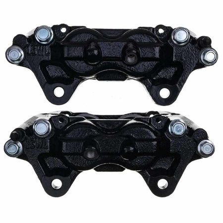 PowerStop Powder Coated Brake Calipers are made specifically with the enthusiast in mind. These calipers (sold as pairs) bolt directly in place of the original stock calipers and look great behind any set of wheels. PowerStop Brake Calipers are engineered to provide the best performance and reliability, and are coated with a durable electrostatic high-temperature black powder coat. The easy-to-clean coating provides resistance to rust and corrosion thus extending the life of your calipers. PowerStop calipers are 100% pressure tested and inspected to verify piston operation to guarantee a reliable, high quality brake performance. Expertly assembled with everything needed for a brake upgrade using new seals, pad retainer pins and ciips, dust boots, bleeder screws, and stainless-steel pad attachment hardware. High temperature EPDM rubber dust boots and premium lubricants ensure a smooth caliper operation and durability in the harshest conditions. PowerStop Powder Coated Brake Calipers are finished in a high-temp powder coating and designed to enhance both the performance and custom look of your vehicle!