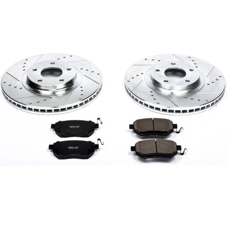 PowerStop is on a mission to deliver an easy way for any driver to upgrade their brakes - no matter where or how they use their vehicle. Forget standard, off-the-shelf parts. Our Z23 Evolution Sport Brake Upgrade Kit comes with everything you need, from pads, rotors and premium stainless-steel hardware for an easy, bolt-on upgrade for your daily-driver. Along with increased braking power, the Carbon-Fiber Ceramic brake pads feature a low-dust formula to keep those wheels looking great while you say goodbye to nasty brake dust. These pads combine with Drilled & Slotted rotors to ensure a cool, smooth ride that protects against rust and corrosion. Give your daily-driver the easy and affordable performance upgrade it deserves with the Z23 Evolution Sport Brake Upgrade Kit.