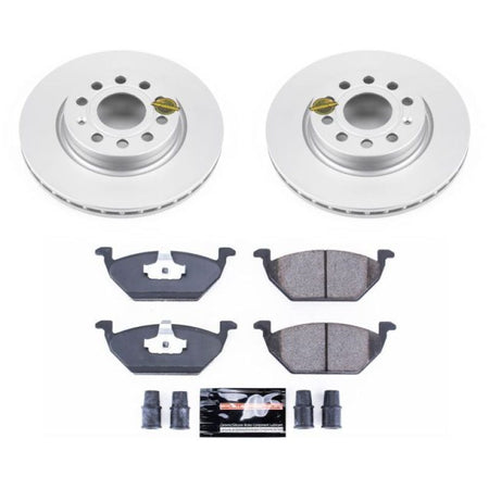 PowerStop is on a mission to deliver an easy way for any driver to upgrade their brakes - no matter where or how they use their vehicle. Our Evolution Geomet Coated Rotor Brake Kit includes Z23 brake pads, rotors, and stainless-steel hardware; everything you need for the affordable, easy upgrade brake kit for drivers with European vehicles. The Carbon-Fiber Ceramic brake pads feature a low-dust formula to keep those wheels looking great while you say goodbye to nasty brake dust. These pads also have multi-layer rubberized shims that insulate noise for virtually silent braking. The rotors are treated with a thin layer of Genuine GEOMET 360 coating to protect against rust and corrosion without diminishing braking performance, and are manufactured to original equipment specifications. If you're looking to refresh the look and braking performance for your European vehicle, our Evolution Geomet Coated Rotor Brake Kit is for you.