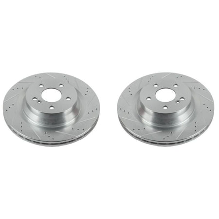 Power Stop drilled and slotted rotors provide a bolt-on upgrade for improved brake cooling and performance. Precision cross-drilled for maximum cooling and maximum performance during extreme conditions; rounded slots sweep away gasses, dust, and moisture to keep a clean friction contact patch on the rotor surface. Silver zinc dichromate plating resists rust and corrosion. With a direct OE fit, there are no special modifications needed.