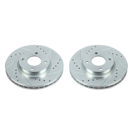 Power Stop drilled and slotted rotors provide a bolt-on upgrade for improved brake cooling and performance. Precision cross-drilled for maximum cooling and maximum performance during extreme conditions; rounded slots sweep away gasses, dust, and moisture to keep a clean friction contact patch on the rotor surface. Silver zinc dichromate plating resists rust and corrosion. With a direct OE fit, there are no special modifications needed.