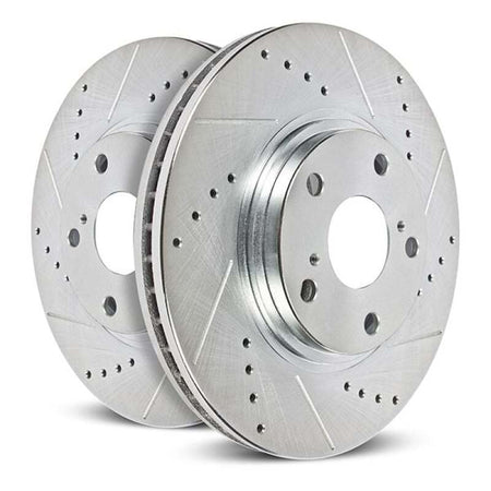 Power Stop drilled and slotted rotors provide a bolt-on upgrade for improved brake cooling and performance. Precision cross-drilled for maximum cooling and maximum performance during extreme conditions; rounded slots sweep away gasses, dust, and moisture to keep a clean friction contact patch on the rotor surface. Silver zinc dichromate plating resists rust and corrosion. With a direct OE fit, there are no special modifications needed.