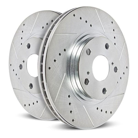 Power Stop drilled and slotted rotors provide a bolt-on upgrade for improved brake cooling and performance. Precision cross-drilled for maximum cooling and maximum performance during extreme conditions; rounded slots sweep away gasses, dust, and moisture to keep a clean friction contact patch on the rotor surface. Silver zinc dichromate plating resists rust and corrosion. With a direct OE fit, there are no special modifications needed.