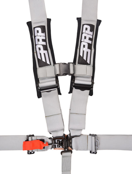 Whether racing, running the dunes, or crawling the Rubicon, the 5.3 Harness will hold you in tight. This 5 point harness with 3" belts has sewn in pads for comfort, all black hardware for style and EZ adjusters on the shoulders. The EZ adjusters allow you to adjust your shoulder straps quickly and even if they are dirty or muddy. The seat belt also has a removable sternum strap, and a red latch guard on the lap belt. The lap belt bolts in. The shoulder harness and crotch strap can either bolt down or wrap around a roll bar. SFI 16.1 certified for racing. Warning Proper installation and consistent use of the 5 point harness restraint system is critical to your safety in event of accident. To reduce risk of serious injury or death: Follow vehicle manufacturers, and PRP Seats instructions and safety messages during installation and use of this product. Use all belts provided. Secure lap belt first; low and snug across hips. Sternum strap tight at chest line (min. 4” below neck). Adjust remaining straps per instructions and confirm fitment restrains user & provides safe clearance from wheel, dash, roll cage, etc. Inspect all components of the 5 point harness restraint system regularly & replace as indicated by accident, wear or abrasion. Replace no later than 2 years from date on SFI 16.1 tag. This 5 point competition restraint system is intended for UTV or other off-road vehicle-not replacement for FMVSS 209 restraints. Never use with child car seats or boosters.