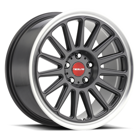 Raceline 315G Grip 18x8.5in / 5x100 BP / 35mm Offset / 72.6mm Bore - Gunmetal & Machined Wheel