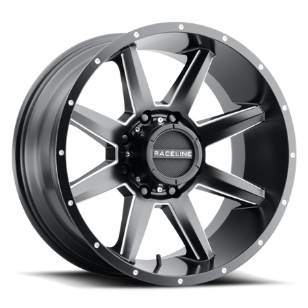 Raceline 954M Stryker 20x9in / 6x139.7 BP / 0mm Offset / 106.1mm Bore - Satin Black & Milled Wheel