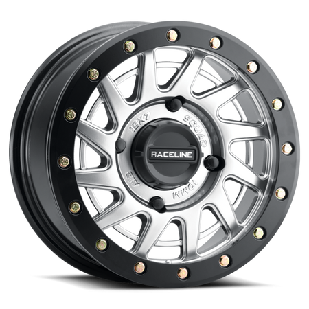 Raceline A12SB Squad 15x7in/4x137 BP/10mm Offset/110.18mm Bore - Silver & Black Ring Beadlock Wheel