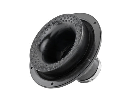 The Skunk2 Universal High Velocity Intake Kit reduces heat soak and maximizes airflow and velocity for any induction system. The kit utilizes a massive 6.8 in. diameter high-flow low-restriction air filter that features a unique double-cone design where the inverted inner filter cone not only increases the filter surface area and air flow capacity, it also helps reduce turbulence inside the filter and guide the incoming air to achieve higher flow rates and velocities. Included with the filter is a unique Composite Velocity Stack that incorporates golf ball like dimples on the surface. These dimples create an energized boundary layer that reduces surface drag and allows air to stay attached as it curves into the bell mouth. The result is higher air velocities and increased air mass delivery to the engine. When we flow tested a conventional air filter design against the Skunk2 filter and used advanced CFD analysis program, our filter flowed 20% more air-mass, which translates to significantly less restriction the engine sees.