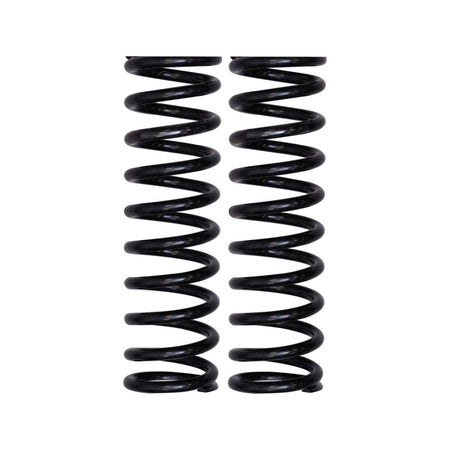 Skyjacker's legendary Softride coil spring technology engineered processes achieve exact height and precise coil spring rates. Known for phenomenal Softride performance, Skyjacker's precision engineering gives you off-road responsiveness with smooth consistence handling characteristics.The process starts with high tensile chrome silicon wire, an advanced method of shot peening and a presetting process. Each coil spring is blasted (shot peen) with hard steel pellets at very high velocities. Shot peening compresses the surface of the steel thereby increasing the tensile strength of the spring. Compressing the spring completely down to where the coils touch (solid height) is preset. This takes any fatigue or stress off the spring and eliminates sagging. Every coil spring has endured a cycle test to assure the very best in quality. Coilover coil springs end configurations are closed. Each coil springs end configurations is ground flat to create a flat surface perpendicular to the spring axis for even surface. This flat surface delivers an even distribution of spring force to the working assembly and improves ease of assembly. All Made in the USA with a stylish, extremely durable protective powder-coated black finish that resists corrosion