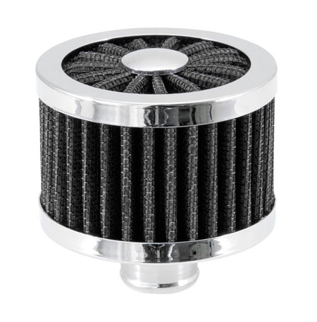 Spectre's High Performance Push-In Breather was designed for valve covers with a 1-1/4 inch breather hole. With a triple chrome-plated steel top and base and an overall height of 2-3/4 inches, this breather features a 2 inch tall Extraflow filter element made from our black synthetic fiber filter media. Manufactured using high quality materials and designed for a universal fit, this high performance breather/vent air filter comes complete with a grommet for quick installation. Note: Legal in California only for racing vehicles which may never be used, registered, or licensed for use upon a highway. See spectreperformance.com for CARB status on each part for a specific vehicle.