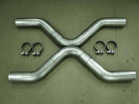 Do it yourself 3" X-style universal crossover kit. All tubes are CNC mandrel bent for optimal flow for all bends in this kit. Made from 304 stainless steel for maximum corrosion resistance. This kit includes 1) X-pipe, that is expanded on all four legs. These are TIG welded for strength and durability. It also includes 4) 45 degree Bends for width and length adjustment, it fits in 11" minimum channel width for use with this setup. 4) Clamps also included to tighten everything up. These kits come with a lifetime warranty and proudly made in the USA.