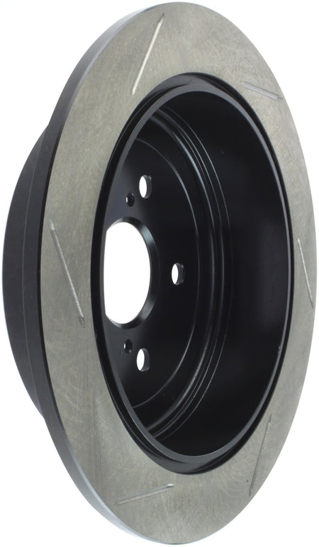 StopTech Slotted Sport Rotors are 1-piece direct replacement brake discs for factory brake systems and stock calipers that look great behind your wheels – and offer significantly improved braking performance. The unique slotting aids with heat and brake dust dispersal; prevents glazing of the pads; adds bite and improves wet and dry braking performance. Built to last; the black e-coating provides protection from corrosion and the high carbon metallurgy (in most applications) offers quieter operation; better crack resistance and increased performance.