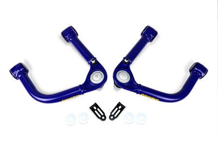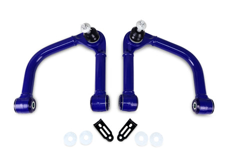 Fixed Offset Arms fitted with Uprated Ball Joints and SuperPro Bushes to reduce Arm movement SuperPro's fixed offset UCA set brings front end alignment and suspension geometry back into an ideal spec for Tundra's and Sequoias lifted 2" to 4" over stock. Measured at a 3" lift from stock the SuperPro TRC6740 kit delivers -1.0 camber and +2.0 caster when paired with the OEM lower control arm. Utilizing maintenance free SuperPro bushings and a uprated high-articulation ball joint the SuperPro UCAs are built to perform and offer superior durability on your favorite trail and superior road manners and on-road handling on the road trip to get there or on your daily commute. Designed and developed in Australia incorporating nearly 5 decades of SuperPro's industry-leading suspension expertise.