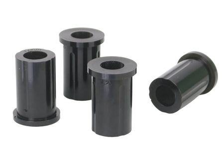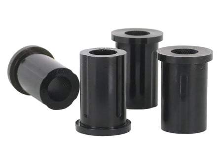 These bushings are often overlooked when upgrading the suspension of a 4WD. Leaf spring bushings stabilize the movement of the rear axle, inferior bushes in this area will cause the solid rear axle to move and impart rear end passive steer to the vehicle. It also causes the vehicle to 'wander' all over the road and be unstable under heavy braking. This can be especially noticeable carrying a load or towing a boat or caravan. The OE rubber style bushes are designed to work at standard height with standard tires and with standard loads. By fitting SuperPro Bushings and upgrading to Greaseable Shackles the rear end of your 4WD will handle just about anything you can throw at it!