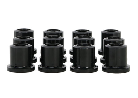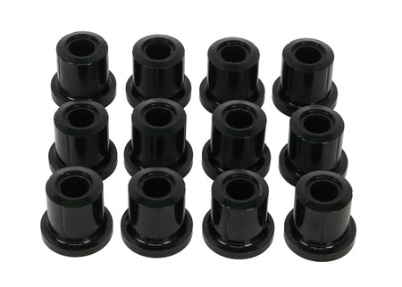 These bushings are often overlooked when upgrading the suspension of a 4WD. Leaf spring bushings stabilize the movement of the rear axle, inferior bushes in this area will cause the solid rear axle to move and impart rear end passive steer to the vehicle. It also causes the vehicle to 'wander' all over the road and be unstable under heavy braking. This can be especially noticeable carrying a load or towing a boat or caravan. The OE rubber style bushes are designed to work at standard height with standard tires and with standard loads. By fitting SuperPro Bushings and upgrading to Greaseable Shackles the rear end of your 4WD will handle just about anything you can throw at it!