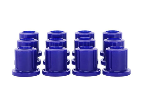 These bushings are often overlooked when upgrading the suspension of a 4WD. Leaf spring bushings stabilize the movement of the rear axle, inferior bushes in this area will cause the solid rear axle to move and impart rear end passive steer to the vehicle. It also causes the vehicle to 'wander' all over the road and be unstable under heavy braking. This can be especially noticeable carrying a load or towing a boat or caravan. The OE rubber style bushes are designed to work at standard height with standard tires and with standard loads. By fitting SuperPro Bushings and upgrading to Greaseable Shackles the rear end of your 4WD will handle just about anything you can throw at it!