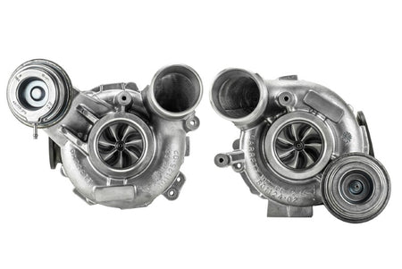The factory turbocharges are disassembled and fully inspected. The compressor cover and center cartridge are then machined to accept Weistec's 5-axis CNC machined impeller wheel. Externally, no changes are made to maintain a completely stock appearance. The new impeller wheel supports greater power levels than the factory unit with little to no sacrifice in spool and response. The turbochargers are then reassembled with new seals and fully balanced for smooth operation and OEM service life. All the original oil and coolant lines bolt right up making for a simple install.