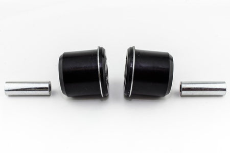 Hard acceleration and braking allow the lower control arms to move around significantly causing axle tramp, poor launch and power delivery. Due to the dynamic nature of these lower control arm bushings this also alters the bump steer characteristics effectively generating significant 'toe in' under hard braking. When replacing the rear caster bushing with a low compliance bushing this alters the dynamic effect within the bump steer so Whiteline has cleverly packaged these items together to give you additional camber during turn in which is achieved through the offset in the low compliance bushing, improved anti lift geometry and neutralised bump steer correction. This kit tightens up the front suspension and makes it more nimble and responsive during acceleration, braking and cornering.