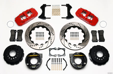 Wilwood AERO4 Rear P-Brake Kit 14.00in Drill Red 58-64 Olds/Pontiac Ends 2.81in Offset