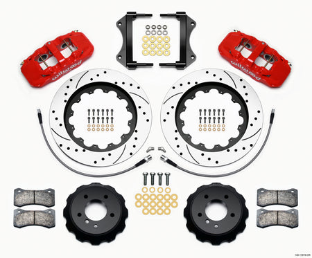 Wilwood AERO6 Front Hat Kit 15.00 Drilled Red 2007-2011 BMW E90 Series w/Lines